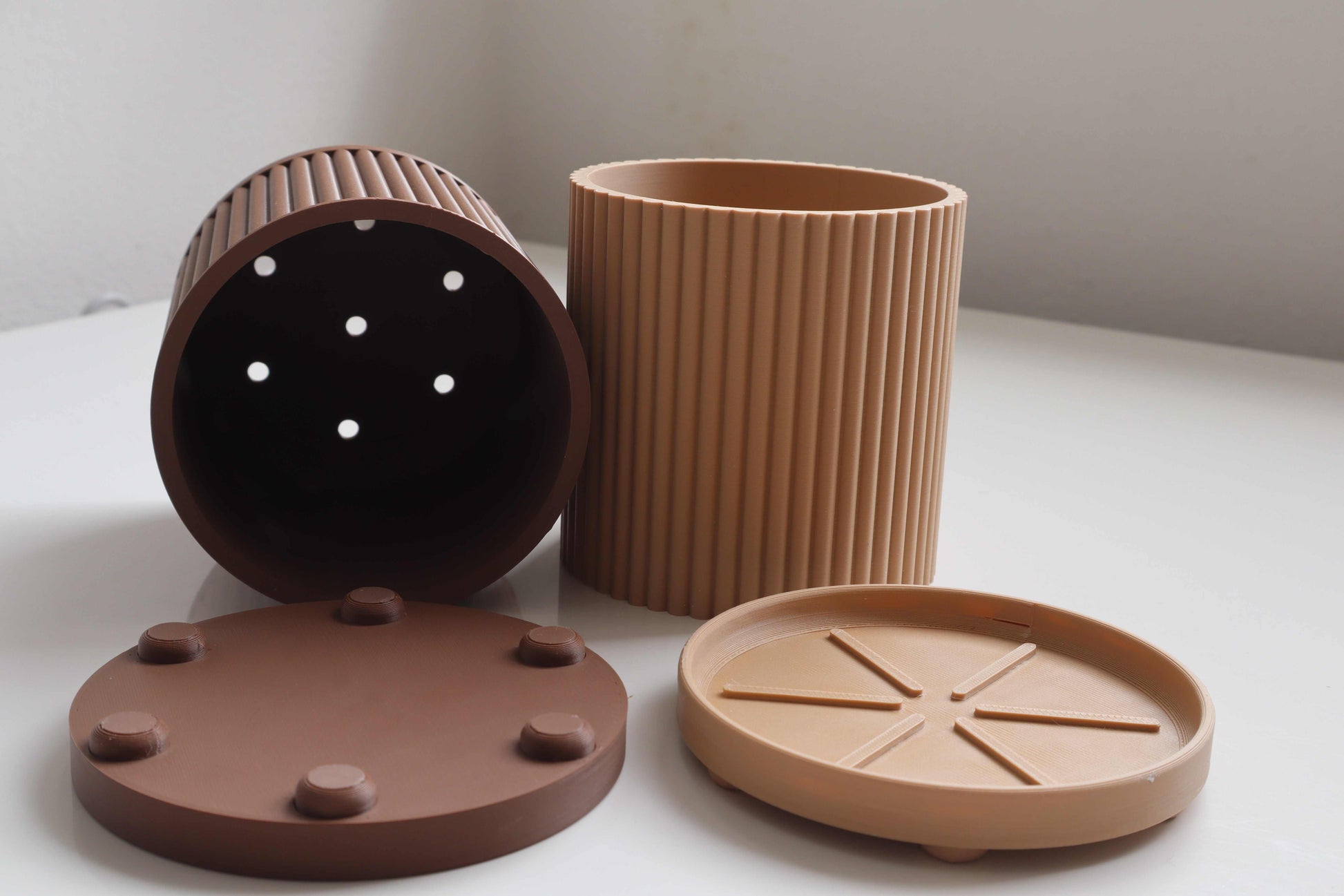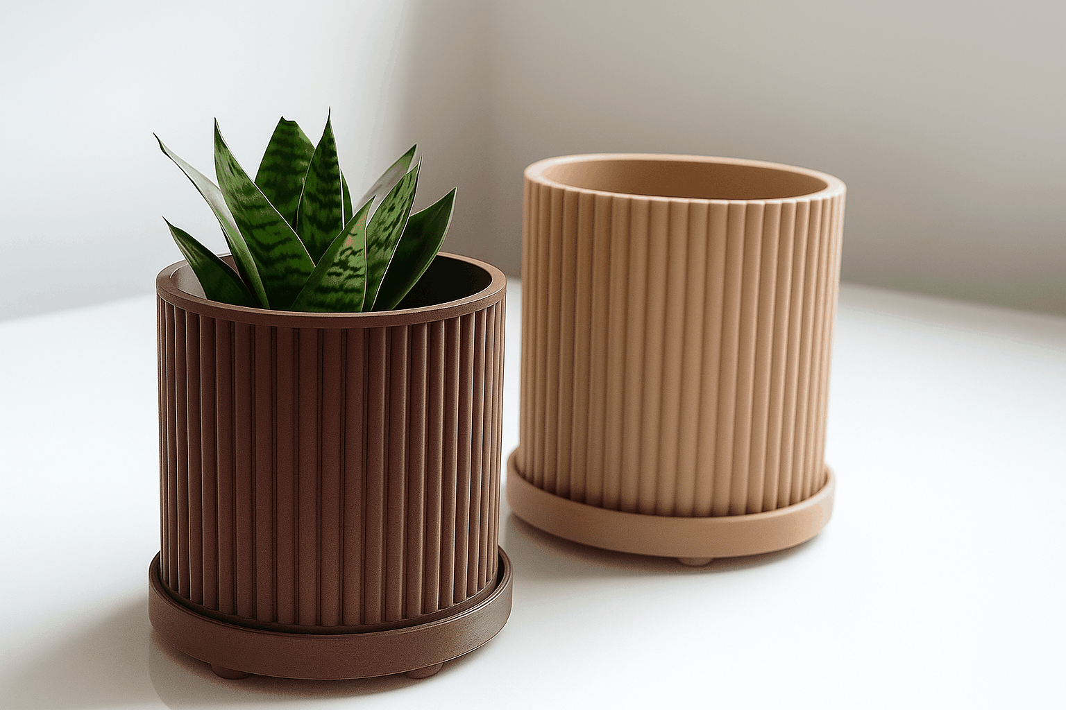 De Arcadia Plantenpot is een eigentijdse plantenpot ontworpen om functionaliteit en strak design te combineren. De verticale ribbelstructuur geeft de pot een moderne uitstraling die past in zowel minimalistische als klassieke interieurs.