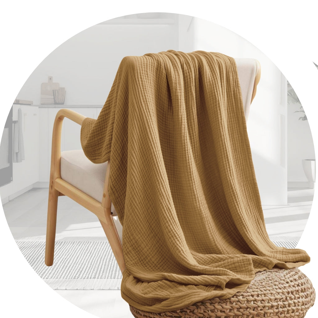 Gemaakt van ademend en luchtig katoen, deze deken is veelzijdig in gebruik en wordt zachter na elke wasbeurt. Omarm comfort en kwaliteit met de Hilvard mousseline deken!